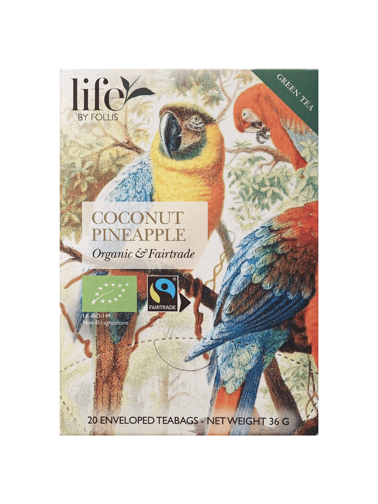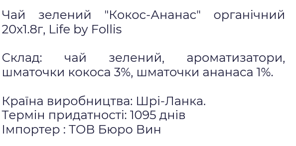 Зелений чай «Кокос-ананас» — це тропіки в кожному ковтку. У Life by Follis суху суміш готують із сировини, зібраної ремісничим способом: зривають лише два верхні листки з брунькою, де міститься максимум антиоксидантів. Бренд контролює повний цикл виробництва, постачаючи чай безпосередньо з плантацій, гарантуючи високу якість і свіжість.
