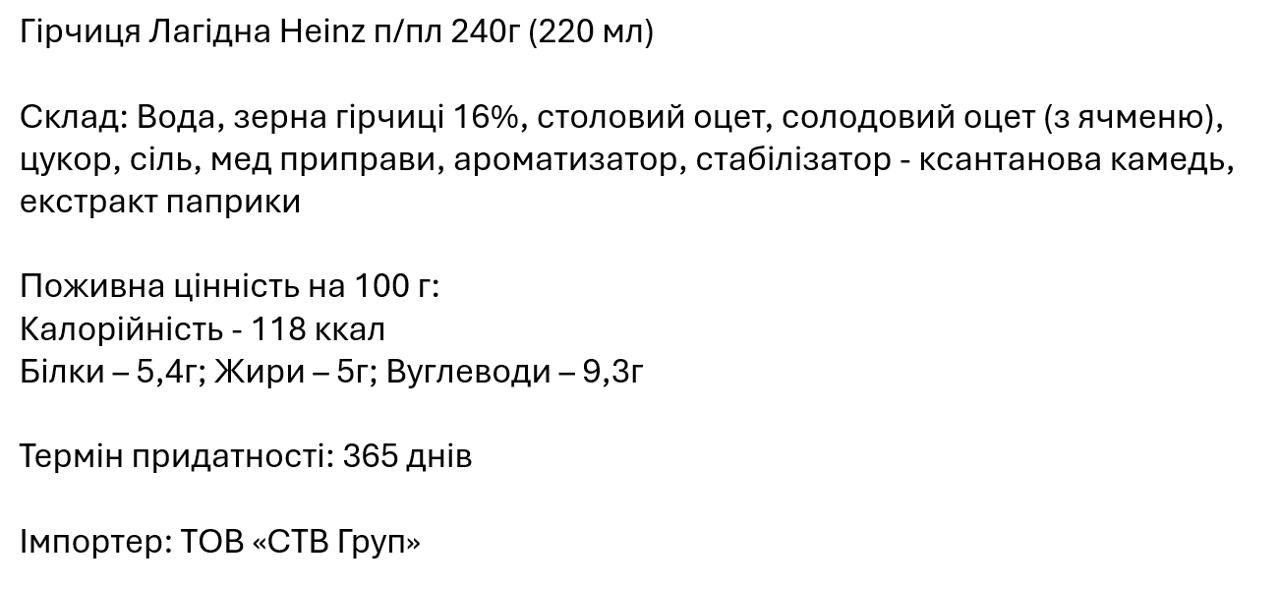 М’яка гірчиця зі збалансованим смаком, яка чудово доповнює м’ясні страви, сендвічі та закуски.