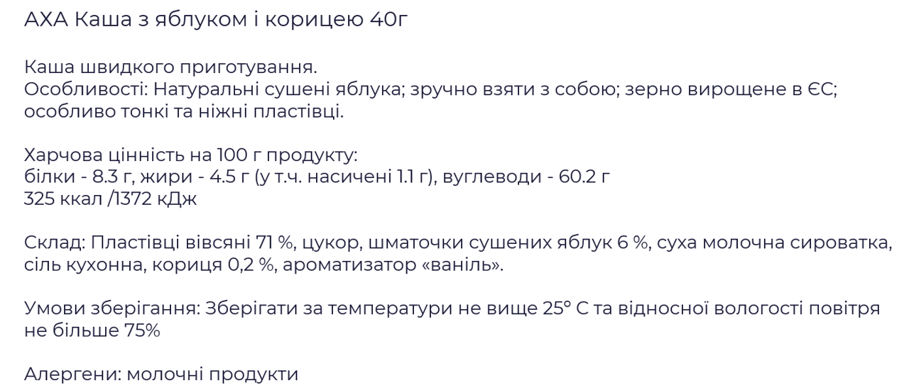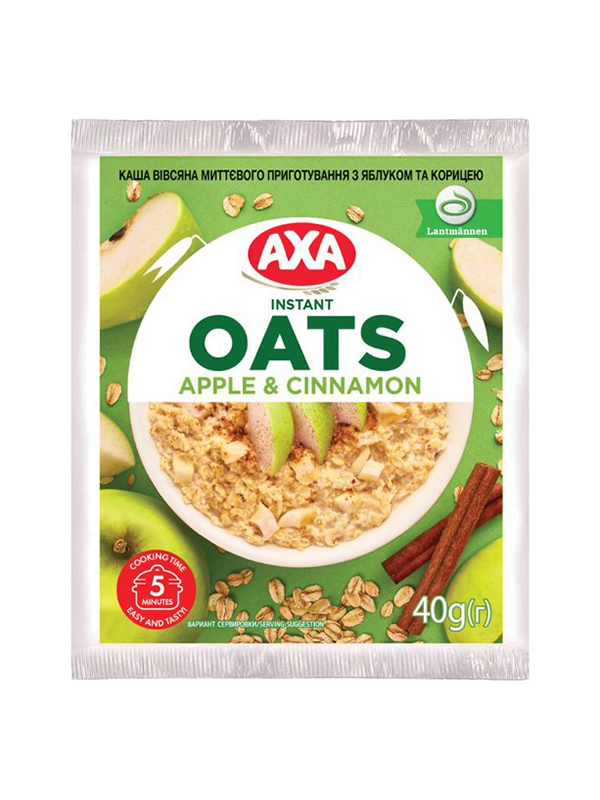 Вівсяна каша швидкого приготування від бренду AXA зі смаком яблука та кориці. Зерно для каш вирощується в Латвії, оскільки балтійський клімат вважається одним із найкращих для злакових культур. Природна сила злаків для всієї родини!