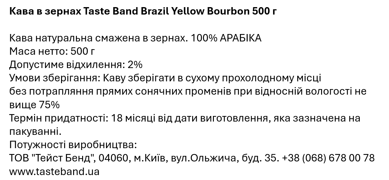 Відкрийте для себе каву Taste Band Brazil Yellow Bourbon, що дарує гармонійний баланс солодкості та міцності смаку.