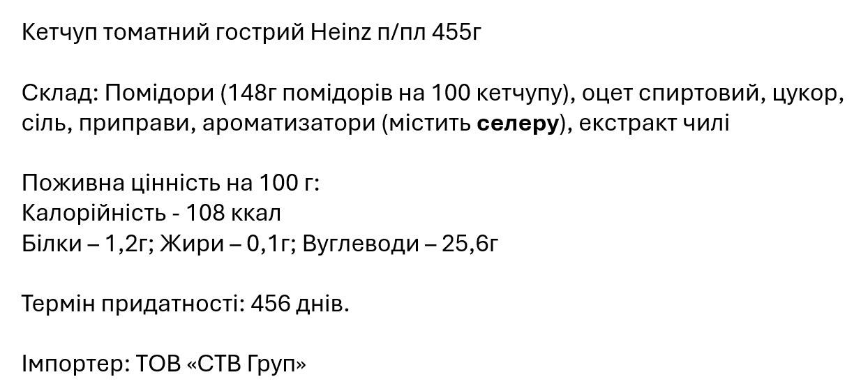 Насичений томатний кетчуп із приємною гостринкою — додає пікантності улюбленим стравам.