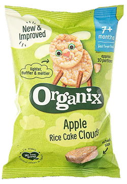 Organix — провідний виробник дитячого харчування у Великобританії. Заснована в 1992 році, компанія швидко завоювала довіру батьків завдяки високій якості й натуральності своєї продукції. Основним компонентом печива є рис, який становить 86,7 % складу. Доданий концентрований яблучний сік (13,0 %) надає продукту солодкості. Легкий пряний аромат відчувається завдяки порошку кориці (0,2 %).