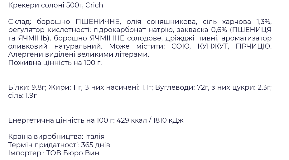 Крекери Crich солоні 500 г