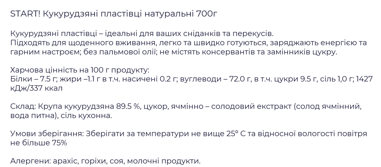 Кукурудзяні пластівці — ідеальний варіант для ваших сніданків та перекусів. Підходять для щоденного вживання, легко та швидко готуються, заряджають енергією та гарним настроєм.