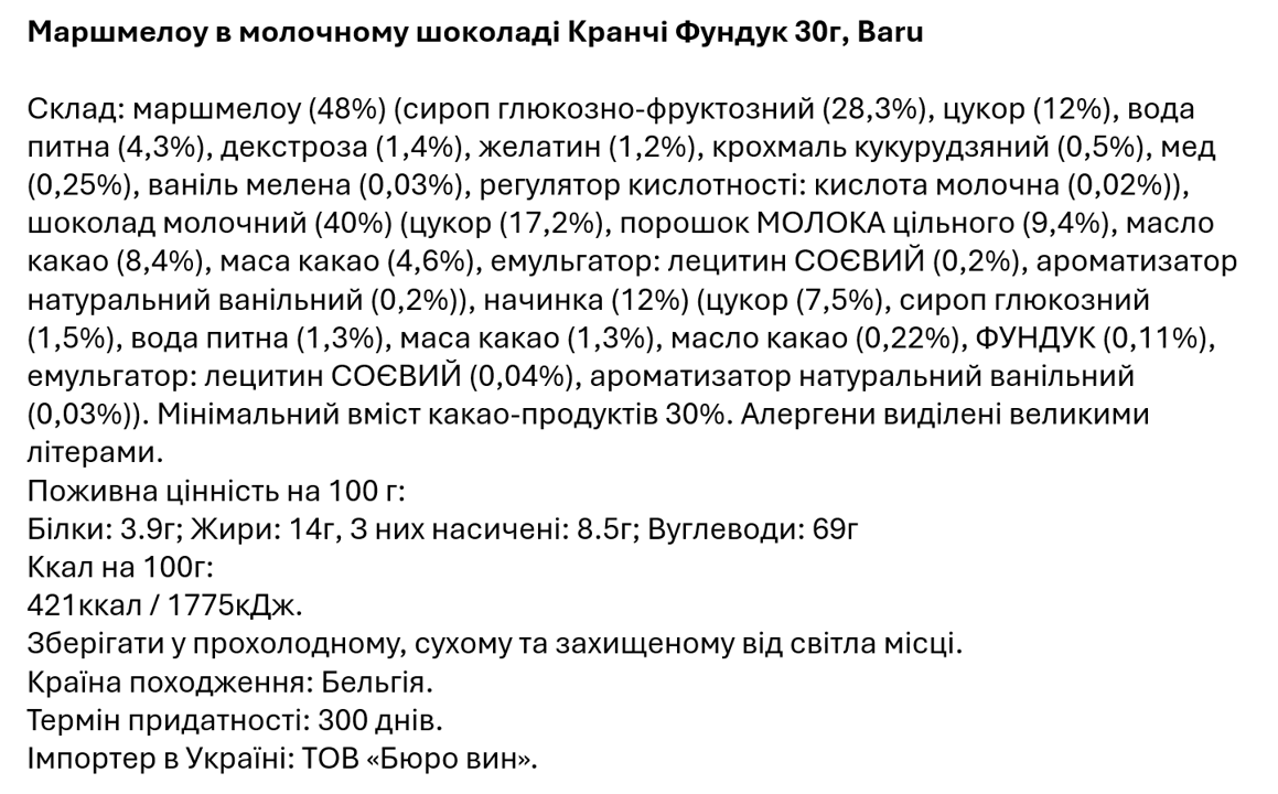Baru — молодий бельгійський бренд солодощів. Шоколаті Baru люблять натуральність, а тому максимально дистанціюються від використання барвників та ароматизаторів. Навпаки, додають у солодощі мед та ваніль. Зефірки сподобаються любителям контрасту смаку.