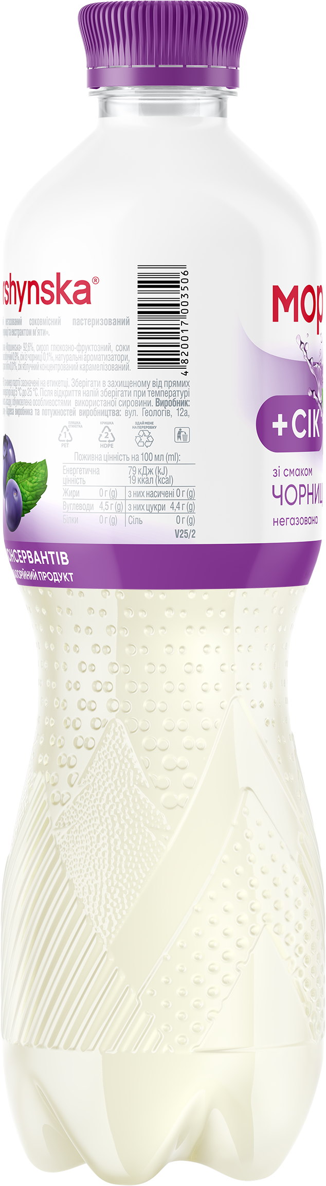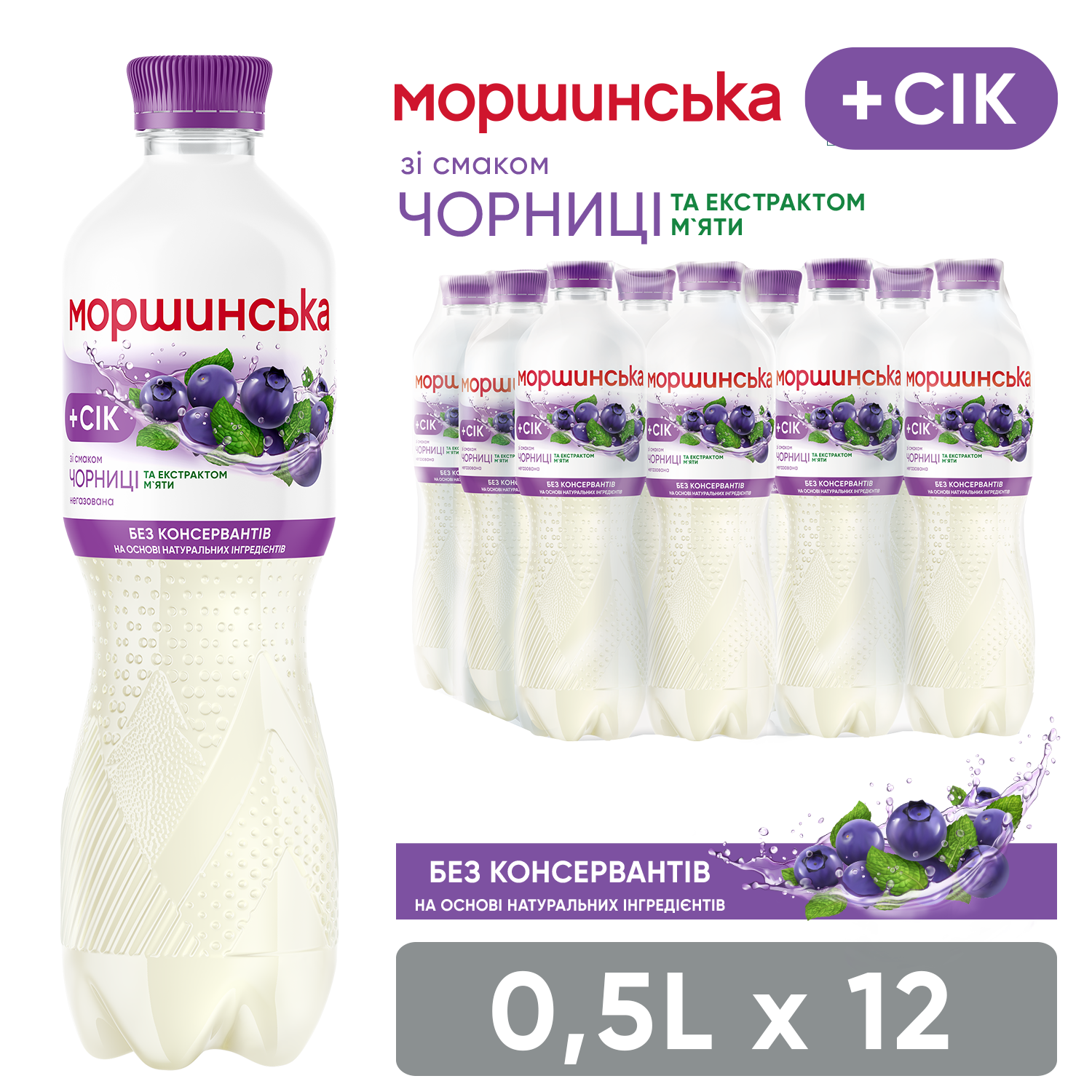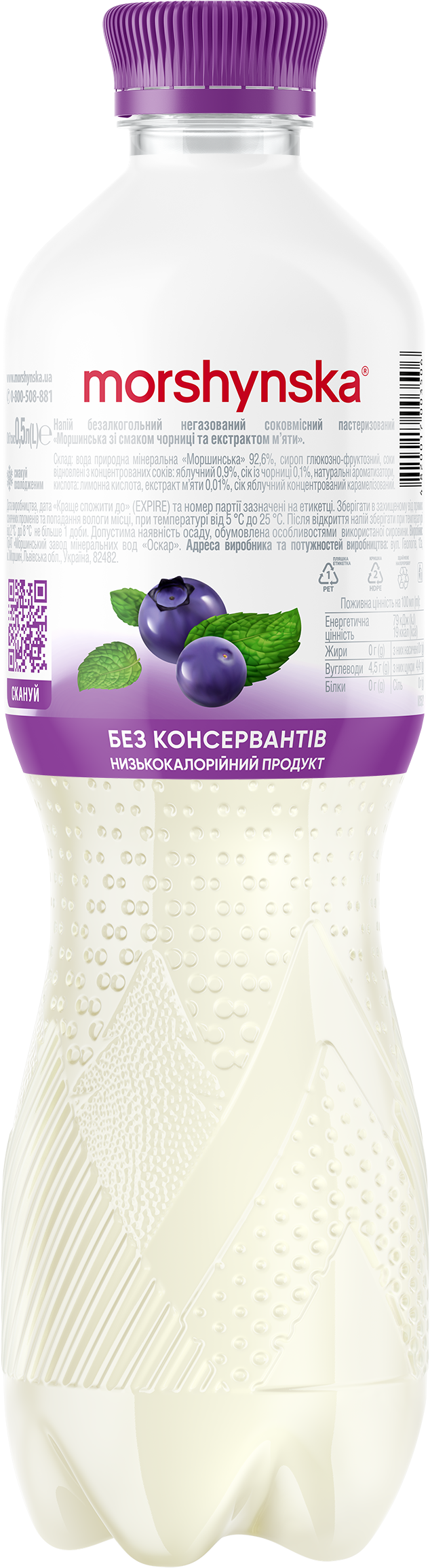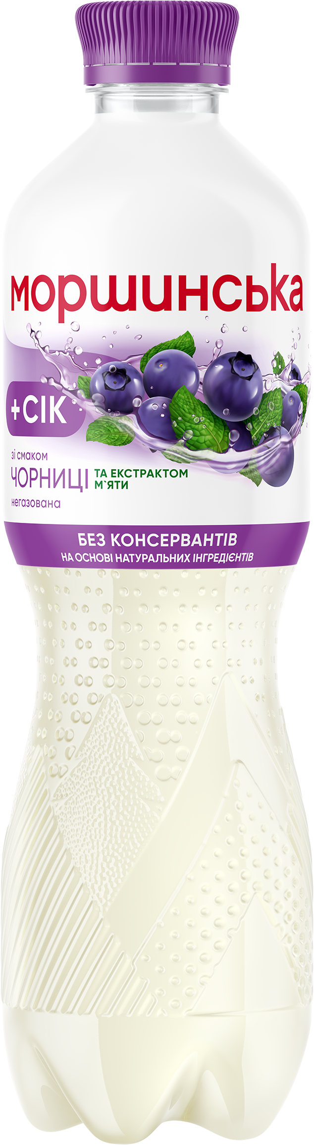 Моршинська зі смаком чорниці та екстрактом м’яти — це комбінація природної мінеральної води Моршинська з соком, яка дасть можливість отримати два в одному — і освіження, і задоволення від смаку.