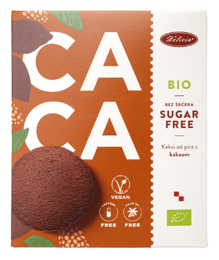Печиво Какао від Delicia — це ласощі із користю. В основі рецептури тут — борошно зі спельти і какао. У складі немає рафінованого цукру. Його замінили на природний підсолоджувач еритрит, який суттєво знижує глікемічне навантаження продукту. Цей десерт стане ідеальним варіантом для веганів, людей із непереносимістю лактози і тих, хто дбає про свій раціон. Печиво має щільну і водночас ніжну текстуру, яка починається апетитним хрустом скоринки й продовжується делікатною м'якістю середини. Виражений смак какао чудово збалансовується натуральною солодкістю еритриту й дає приємну гірчинку в післясмакові. Хорватський бренд Delicia спеціалізується на здоровій випічці. Він відомий своїми авторською рецептурою й особливою увагою до походження інгредієнтів.