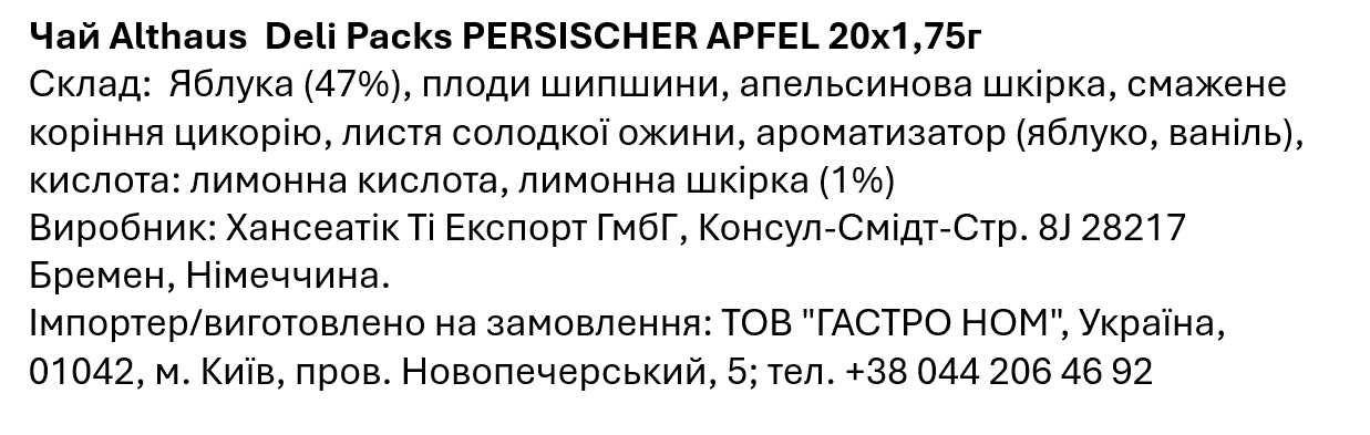Чай Althaus Deli Packs Persischer Apfel (20 пак)