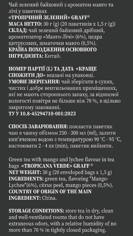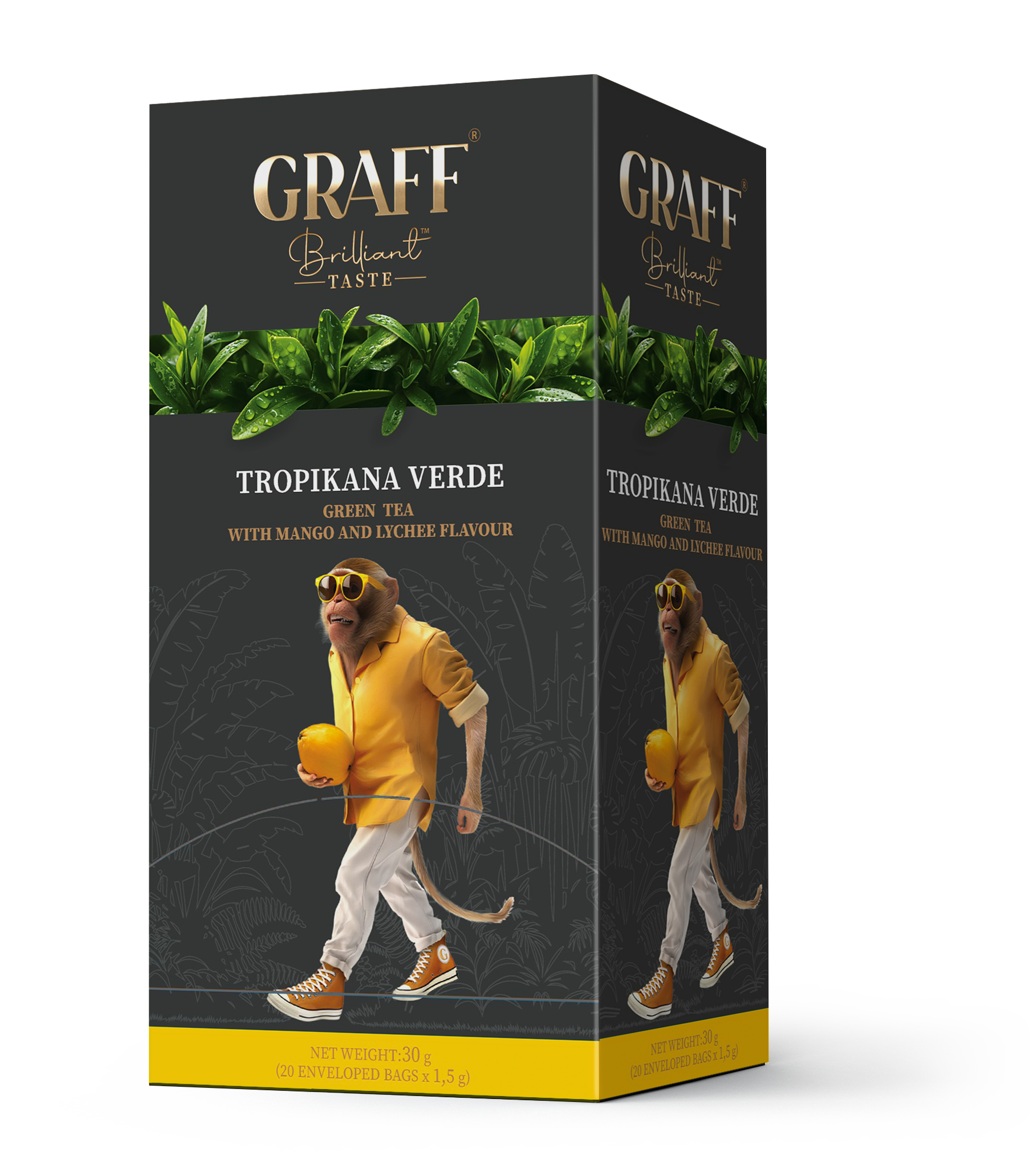 Это экзотический зелёный чай с ароматом манго и личи, который перенесёт вас в тропический рай. Он сочетает яркий, освежающий вкус манго с нежной сладостью личи, создавая неповторимую гармонию. Tropicana Verde очаровывает своим ароматом, пробуждающим ощущение летней свежести и приятного наслаждения.