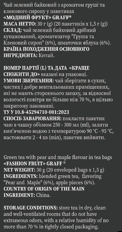 Это элегантный чай, объединяющий нежность и сладость для создания абсолютно чарующего напитка. Эта эксклюзивная смесь воплощает идеальный баланс аромата сочной груши и кленового сиропа, придавая напитку глубокий, насыщенный вкус и аромат.