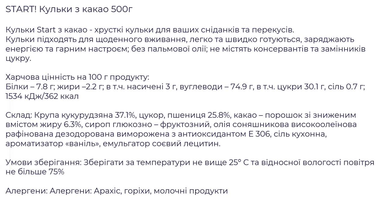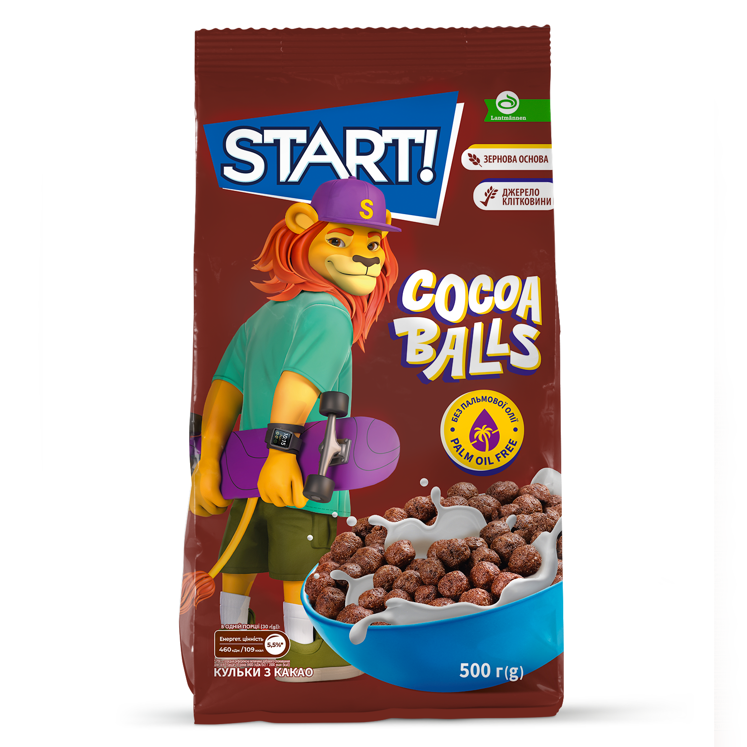 Шарики Start! с какао — это хрустящие шарики для вкусных завтраков и перекусов. Шарики подходят для ежедневного употребления, без пальмового масла, не содержат консервантов и заменителей сахара. Шарики прекрасно сочетаются с молоком или йогуртом по вкусу.