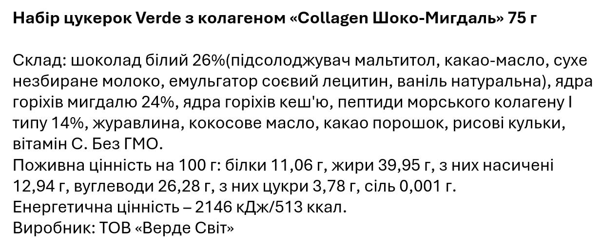 Морской коллаген + белый шоколад + миндаль + клюква — нежный шоколад, хрустящий миндаль и яркая ягодная кислинка. Сладкое удовольствие с пользой для вашей красоты!