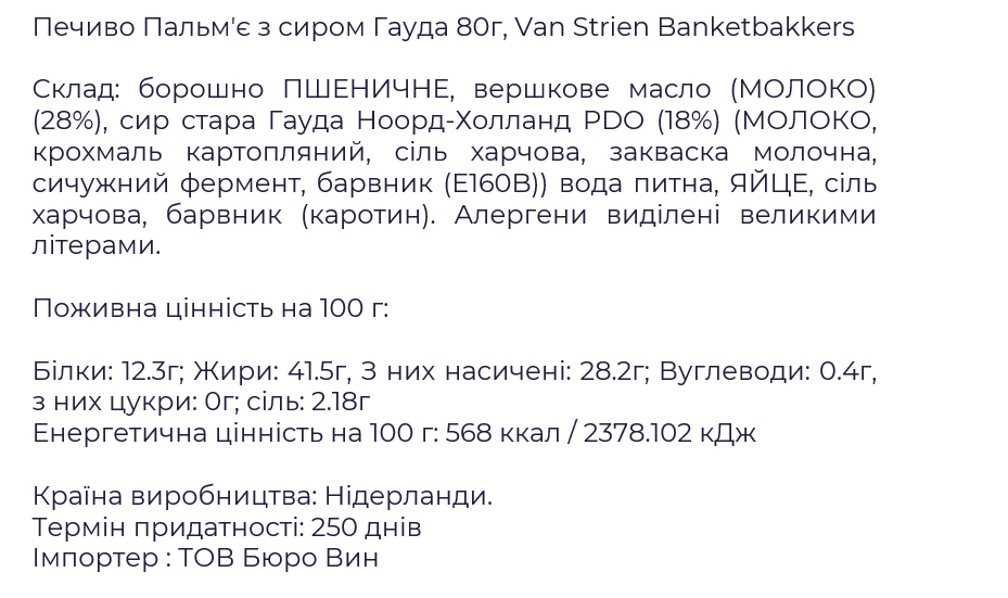 Печенье Van Strien Banketbakkers Пальмье с сыром Гауда 80 г