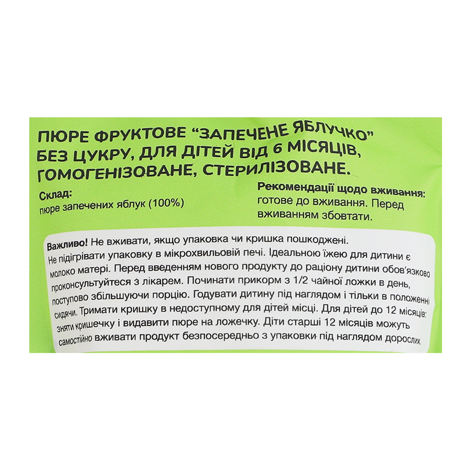 Нежное пюре из запечённого яблочка с природной сладостью и лёгкой карамельной ноткой. Идеально для первого прикорма — легко усваивается, приятное на вкус, без каких‑либо добавок. Ничего лишнего — только качественное яблоко, запечённое с заботой.