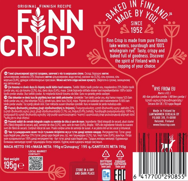 Сухарики Finn Crisp делают из цельной ржаной муки, максимально сохраняя её пользу. Кроме того, сухарики очень удобны, когда нужно быстро перекусить, и могут полностью заменить хлеб.