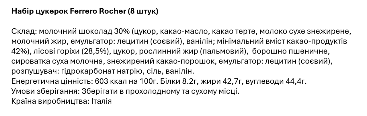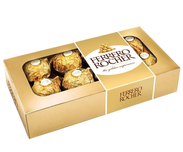 Ferrero Rocher — это изысканная конфета с целым лесным орехом внутри, утончённым ореховым кремом в хрустящем вафельном слое, покрытая молочным шоколадом с дроблёными лесными орехами.