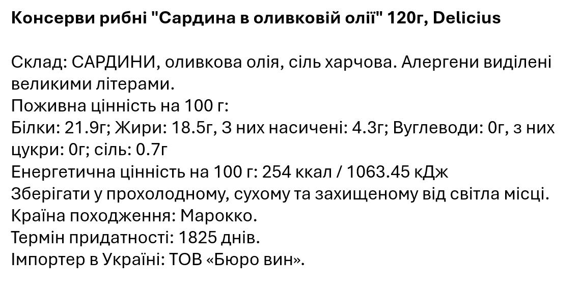 Соковиті сардини з оливковій олії від бренду Delicius.
