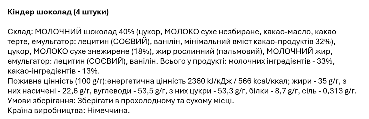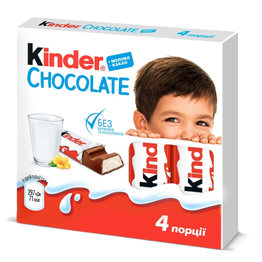 Завдяки своєму унікальному рецепту — ніжному молочному шоколаду з молочною начинкою – Kinder® Chocolate ідеально підходить для дітей, коли їм хочеться солодкого. Мами теж будуть задоволені, адже індивідуально упаковані батончики дають батькам можливість з легкістю контролювати споживання шоколаду дітьми.