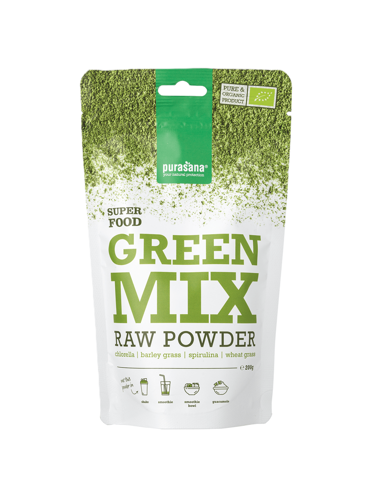 Ця органічна суміш від Purasana поєднує хлорелу, спіруліну та ячмінь, створюючикомплекс для підтримки організму. Для приготування корисного напою змішайте 5 г суміші з 300 мл рідини: смузі, йогурту або додайте в гуакамоле для додаткової користі.