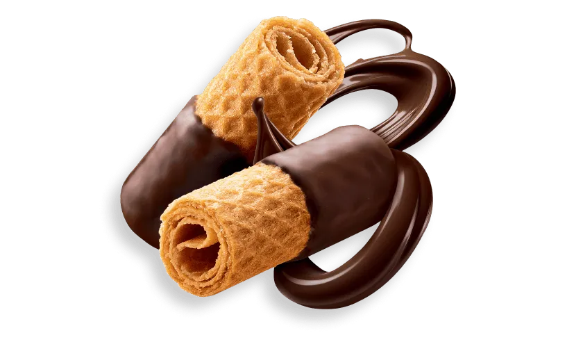 Витончені вафельні трубочки, вкриті насиченим темним шоколадом, створюють гармонійний баланс між хрускотом і глибоким шоколадним смаком. Відмінний вибір для гурманів, які цінують витончені солодощі.
